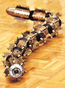 2005 아이치 만국박람회가 열리고 있는 일본 나고야 인근 나가구테에서 선보인 뱀처럼 움직이는 수륙양용 로봇. 도쿄 공대 히로세 시게오 교수가 개발한 이 로봇은 특히 지진 등 재난으로 무너진 건물에서 생존자 탐색에 활용할 수 있다.