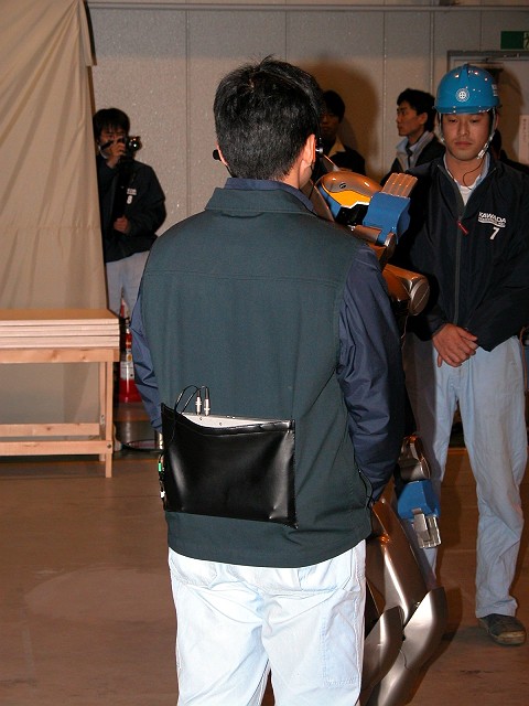 HRP-2에의 지시는 음성으로 실시한다. 등의 노트 PC에 입력되어 커멘드를 해석, 명령을 무선 LAN로 전송 한다