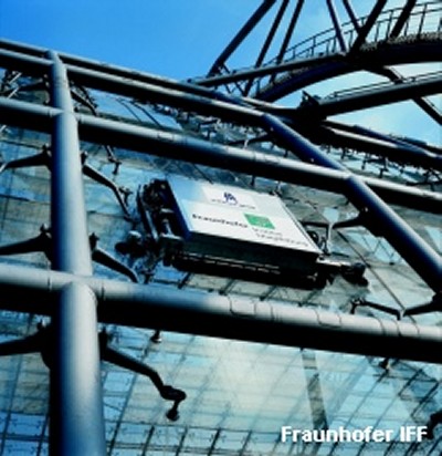 세계 최초의 아치형의 유리 구조물의 완전 자동 클리닝 시스템은 Leipzig Fair의 유리 지붕에서 동작하고 Magdeburg의 Fraunhofer IFF에서 개발했다. 아치형 유리 빌딩은 길이 243m, 너비 80m, 높이 28m이다. 그것을 투명하고 빌딩의 투광조명 특성을 유지하기 위해서는 25,000 평방미터의 유리면이 고르게 청소되어야한다. 아치형 유리 빌딩은 외부의 철제 구조를 가지고 있다. 유리 창틀은 0.35m의 거리를 둔 철제 구조물의 아래에 매달려있다.