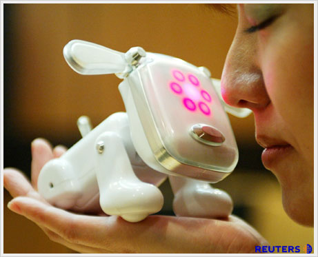 25일(현지시간) 일본 도쿄에서 세가 토이스社의 애완용 로봇 `아이-독(I-Dog)`이 선보여지고 있다. 이 장난감은 사용자가 머리, 코, 꼬리 등을 건드리면 음악을 연주하고, 그 음악에 맞쳐 춤까지 추는 기능을 가지고 있다. 이 장난감은 일본에서 오는 4월에 3,980엔(미화 40달러)의 가격으로 출시되고, 미국의 장난감 제조사 하스브로社와 제휴를 맺어 북아메리카, 유럽, 아시아 지역에서도 올 8-9월 즈음에 출시될 예정이다. [로이터] [이 게시물은 로보맨님에 의해 2013-09-14 12:25:24 robo_갤러리에서 이동 됨] [이 게시물은 로보맨님에 의해 2013-09-15 12:26:45 갤러리에서 이동 됨]