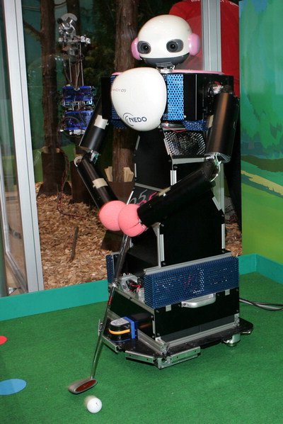 2005년 6월 9일 일본 아이치 세계박람회에 골프를 치는 로봇이 등장해 인기를 끌고 있다. 이 로봇은 전세계 골프장 자료 및 지리정보시스템(GPS)을 내장하고 있으며 앞으로 캐디로 활용될 예정이다. / 나가쿠테 - AP연합 [이 게시물은 로보맨님에 의해 2013-09-14 12:21:54 robo_갤러리에서 이동 됨] [이 게시물은 로보맨님에 의해 2013-09-15 12:26:45 갤러리에서 이동 됨]