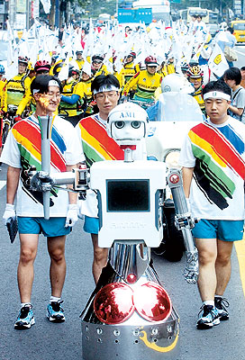 대구 유니버시아드경기 대회를 10여일 앞둔 10일 서울 대학로에서 한국과학기술원(KAIST)이 제작한 로봇 ‘아미’에 의해 성화가 봉송되고 있다. 출처 - 연합뉴스 [이 게시물은 로보맨님에 의해 2013-09-14 12:33:20 robo_갤러리에서 이동 됨] [이 게시물은 로보맨님에 의해 2013-09-15 12:26:45 갤러리에서 이동 됨]