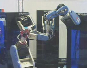 드디어 전부 링크 했습니다. Humarm580 3대, Limbot850 1대, 총 24축을 한대의 노트북에서 동기제어하도록 링크했습니다. 사진은 2005년 KOMAF (주)세진아이지비[SEJINiGB Co.Ltd.] 전시관에서 루빅스 큐브 솔루션 시연 동영상을 편집한 것입니다.
