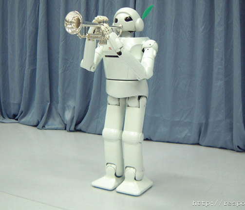 로봇은 인공 폐와 인공 입술을 갖춘다. 전자 악보 데이타가 메모리에 기록되고 있고 이 데이타를 기초로 인공 폐와 인공 입술, 손가락을 제어한다. 데모에서는 트럼펫을 손에 쥔 2족 보행 형 로봇이 무대 뒤에서 등장, 중앙에서 마우스 피스를 입에 갖다대고 인간이 연주하는 것과 같은 자세로 연주를 개시했다. 데모의 중간에 이륜 주행 형 로봇도 트럼펫을 손에 들고 등장, 2대의 로봇에 의한 합주를 연주했다. 2족 보행 형은 1200mm, 이륜 보행 형은 1000mm의 높이이며 무게는 함께 35kg이다.